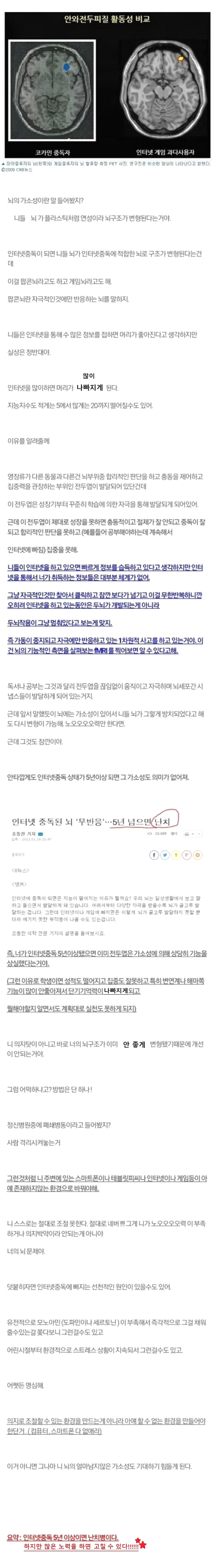 <인터넷 중독 5년 이상이면 뇌가 변한다.>